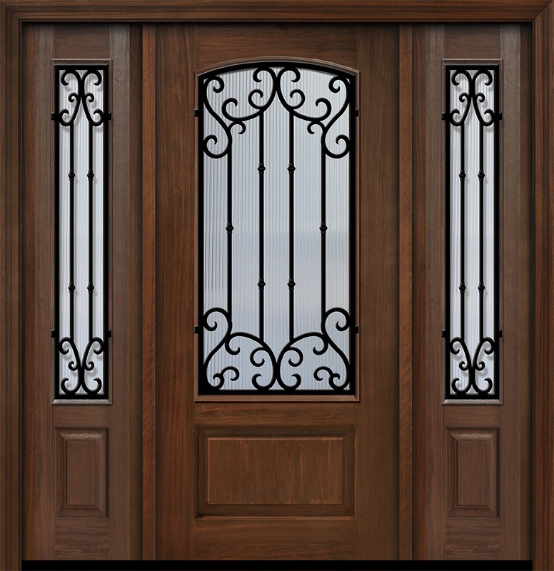 80" 1 Panel 3/4 Arch Lite Valencia Wrought Iron Mahogany Door /2side