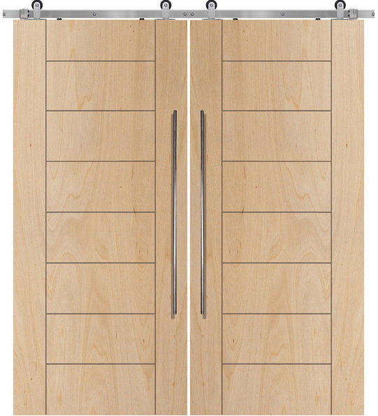 107" Birch Brentwood Solid Contemporary Double Barn Door