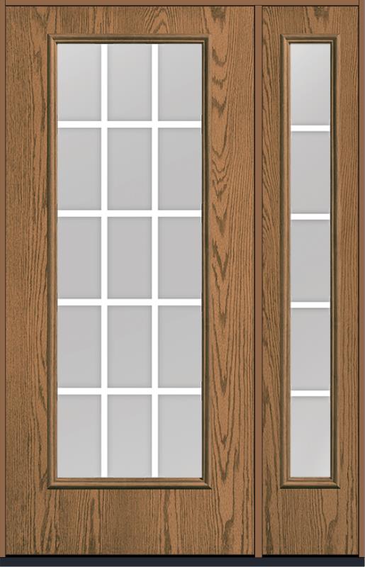 80 Clear Colonial 15 Lite Flat Bar GBG Oak Full Lite Fiberglass Single Door,Sidelite , WBD Impact