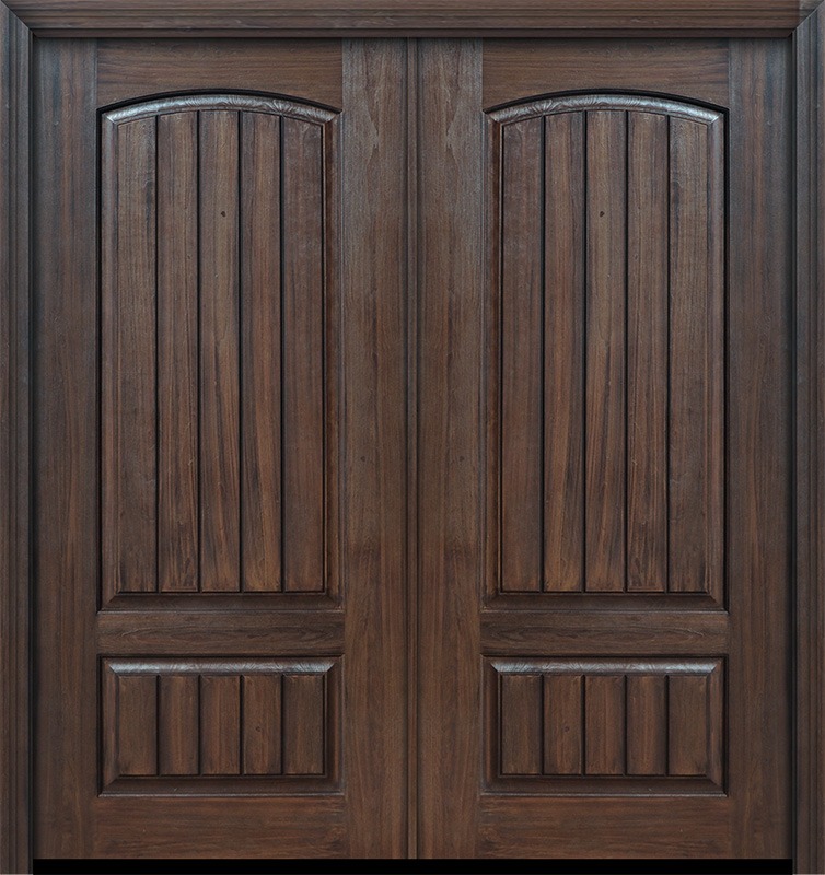 80" Double 2 Panel Arch V-Grooved Knotty Alder Door