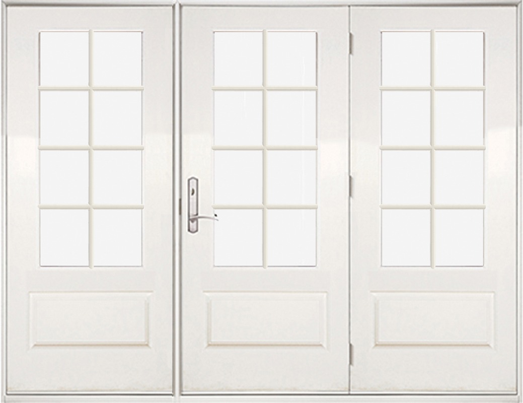 Low-e 3/4 Lite, 8 Lite SDL Fiberglass Center Hinged Triple Door