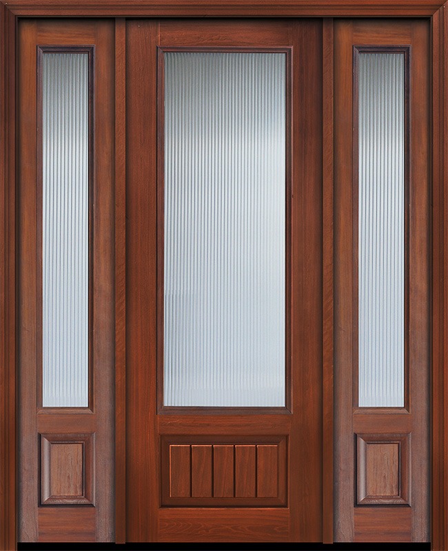 96" 3/4 Lite Privacy Glass V-Grooved Panel Mahogany Door /2side