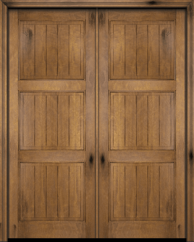 Mahogany V-Grooved Panel Rustic Solid Double Door|P301-V-OG-RST