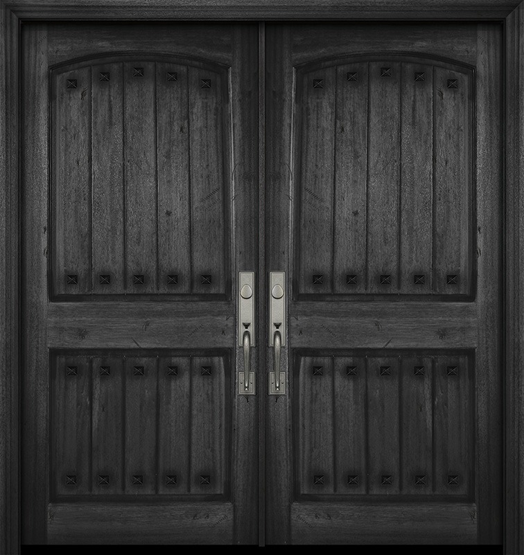 36" x 80" Double Arch 2 Panel V-Grooved DoorCraft Mahogany Door with Clavos