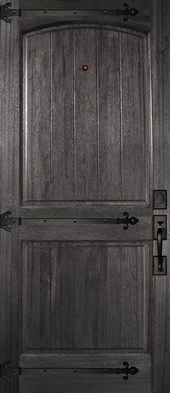 36" x 80" Arch 2 Panel V-Grooved DoorCraft Mahogany Door with Straps