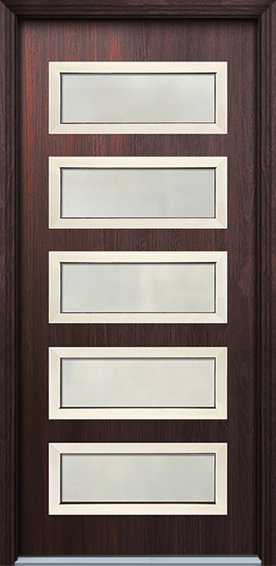 Pro 36" x 80" Beverly 5 Lite Contemporary Mahogany Fiberglass Single Door w/Aluminum Frame