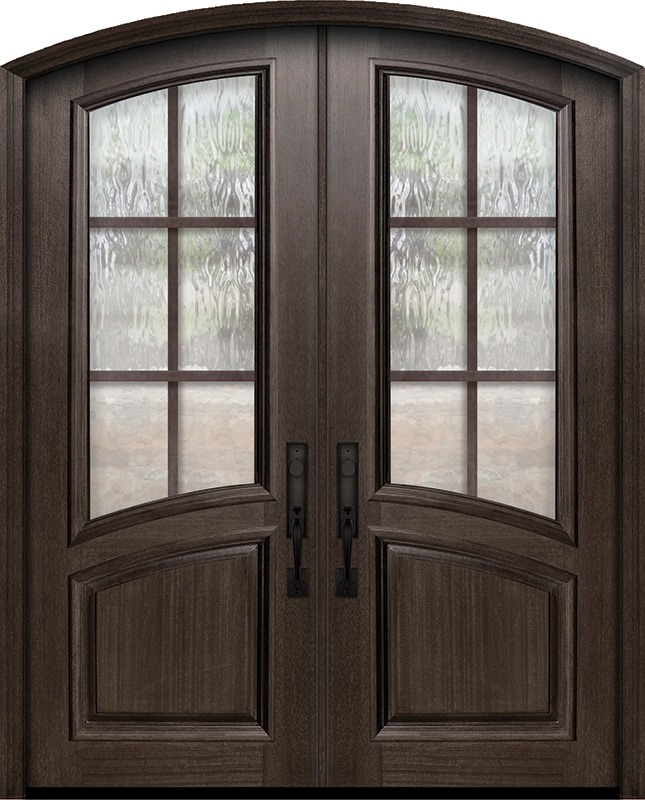 36" x 96" Double Arch Top & Rail 6 Lite SDL Portobello Mahogany Door