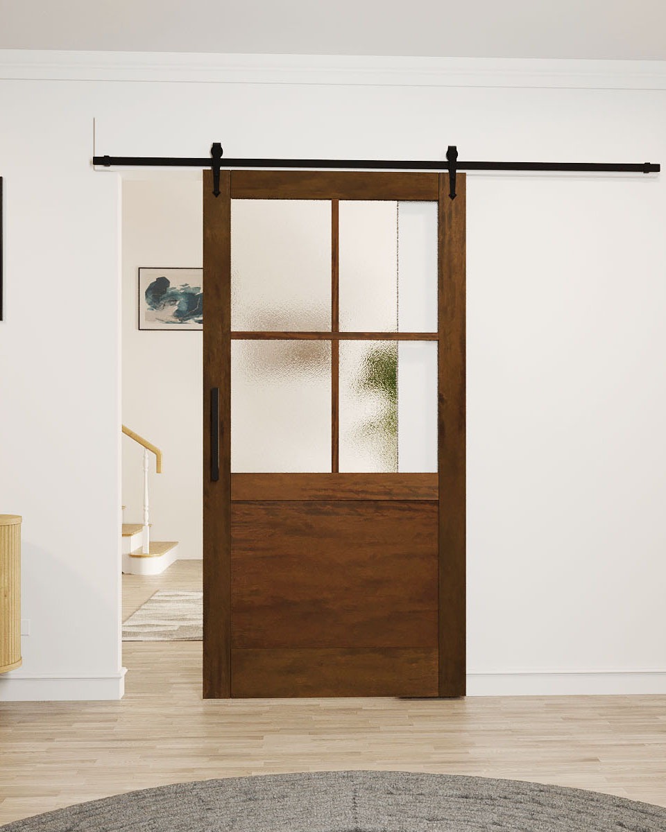Mahogany 1/2 Lite, 4 Lite SDL 1 Panel Shaker Single Barn Door|G5004-BARN