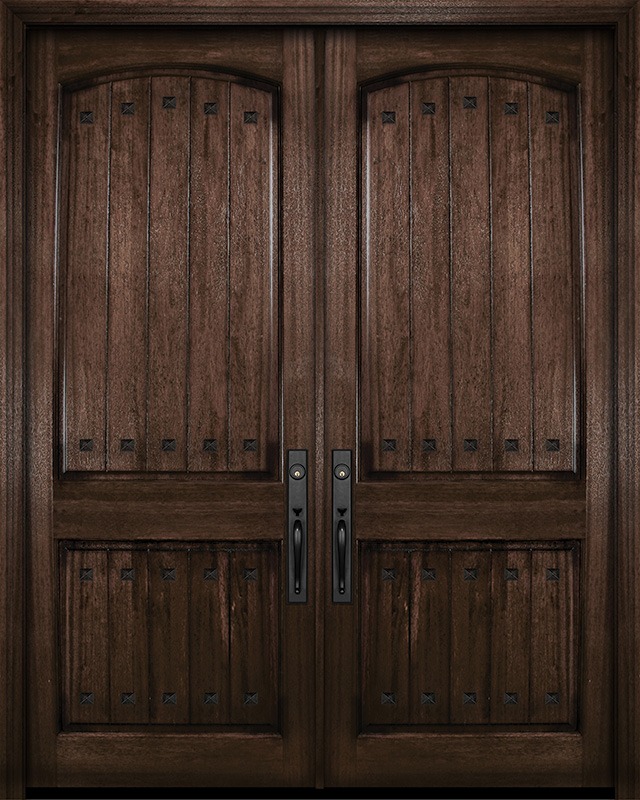 42" x 96" Double Arch 2 Panel V-Grooved DoorCraft Mahogany Door with Clavos