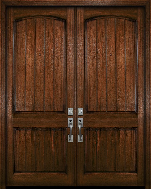 42" x 96" Double Arch 2 Panel V-Grooved DoorCraft Mahogany Door