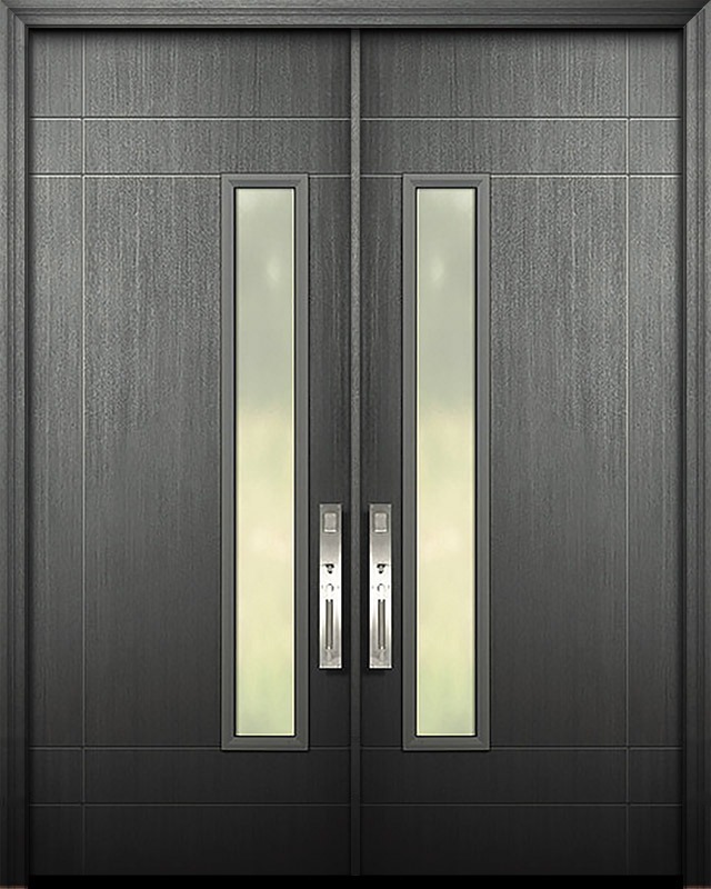 42" x 96" Double Santa Barbara Mahogany Solid Contemporary Door w/Textured Glass