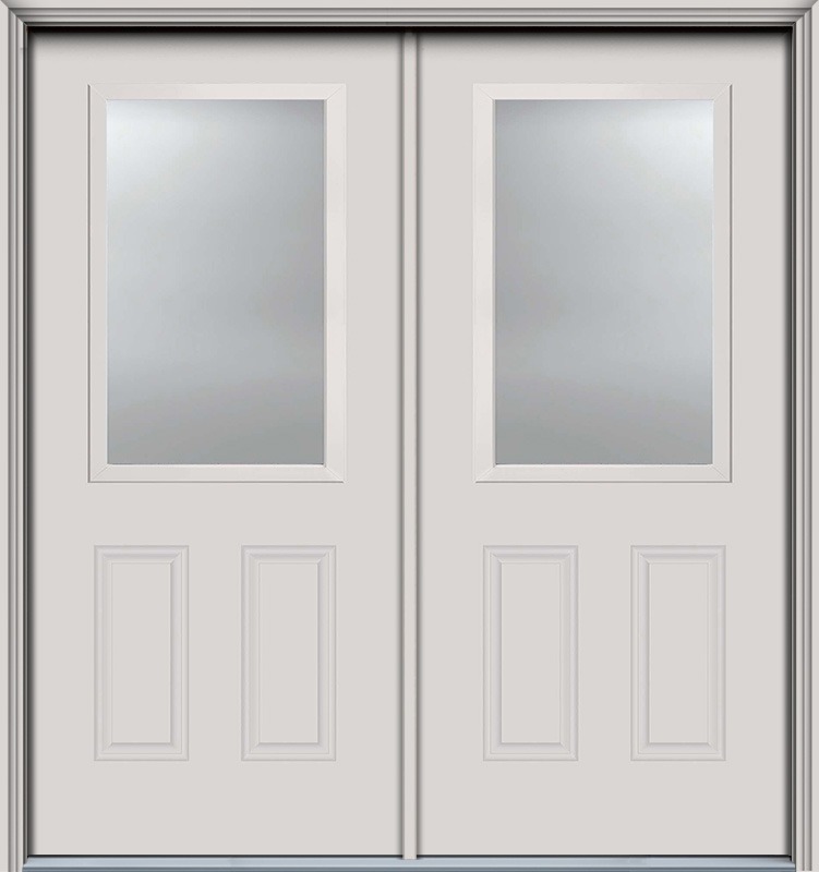 80" 1/2 Lite 2 Panel Smooth Fiberglass Double Door, WBD Impact