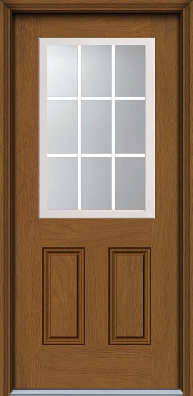 80" 1/2 Lite, 9 Lite GBG 2 Panel Colonial Woodgrain Fiberglass Single Door, WBD Impact