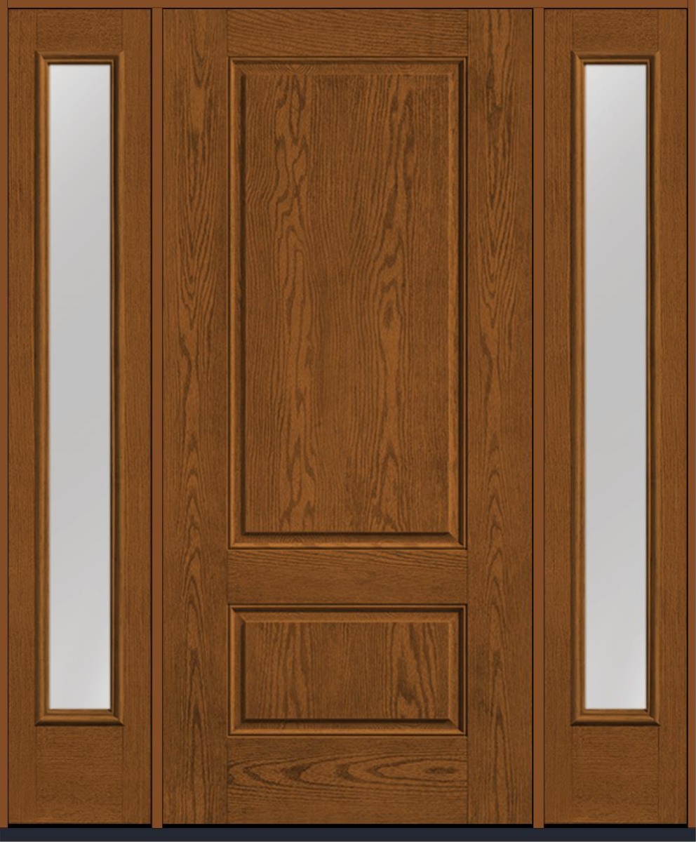 80" 2 Panel 3/4 Top Oak Fiberglass Single Door, Full Sidelites