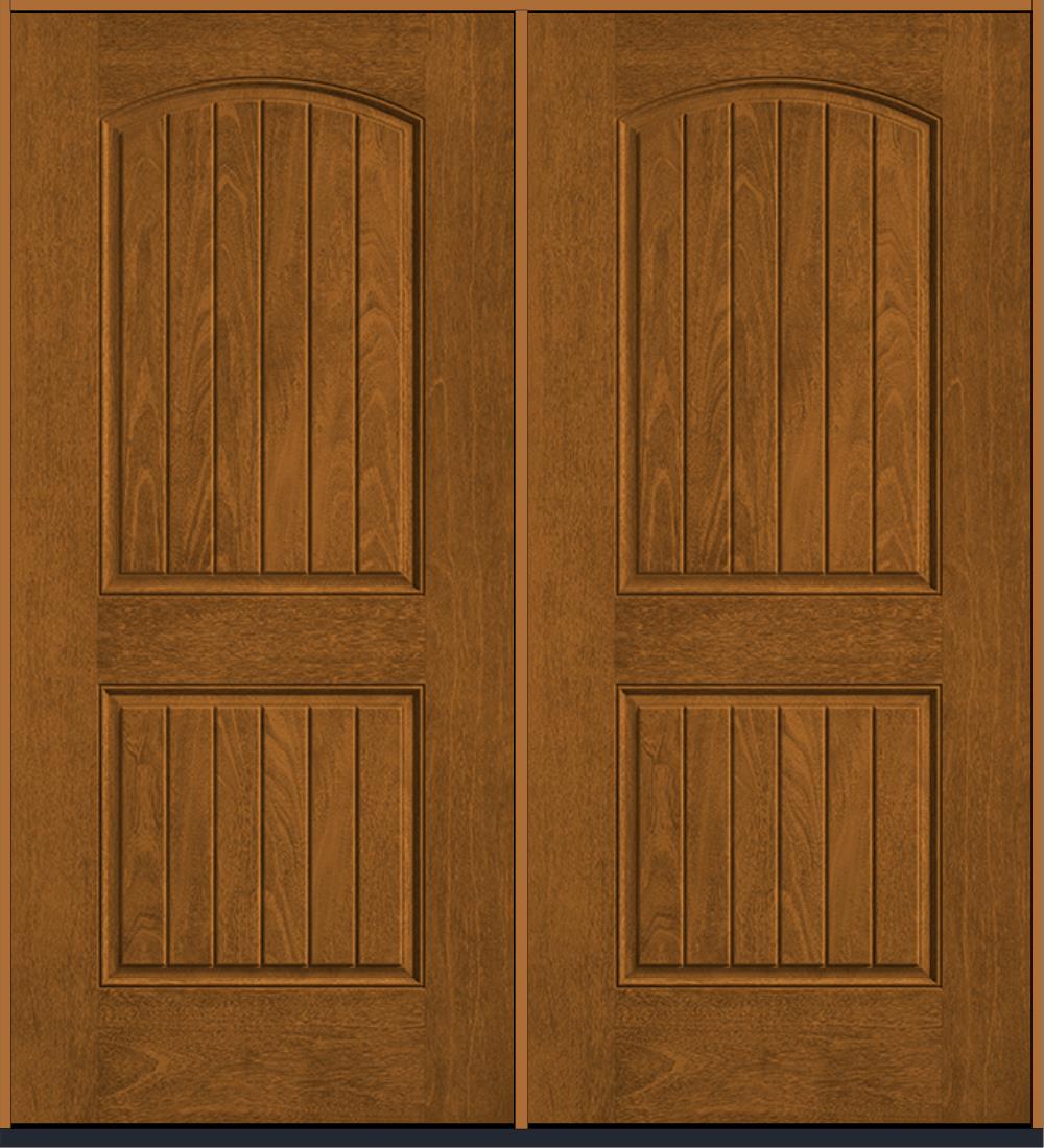 80" 2 Panel Plank Soft Arch Mahogany Fiberglass Double Door