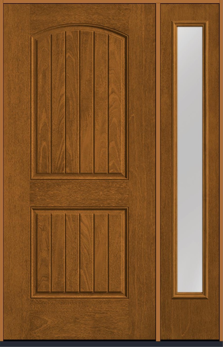 80" 2 Panel Plank Soft Arch Mahogany Fiberglass Single Door, Full Sidelite
