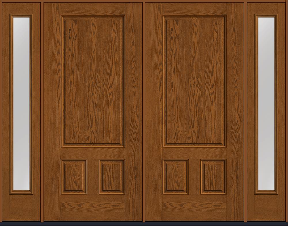 80" 3 Panel Square Top Oak Fiberglass Double Door, Full Sidelites