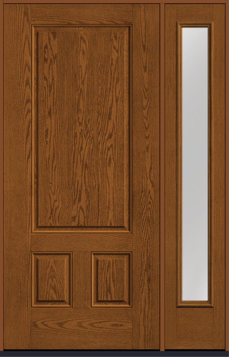 80" 3 Panel Square Top Oak Fiberglass Single Door, Full Sidelite