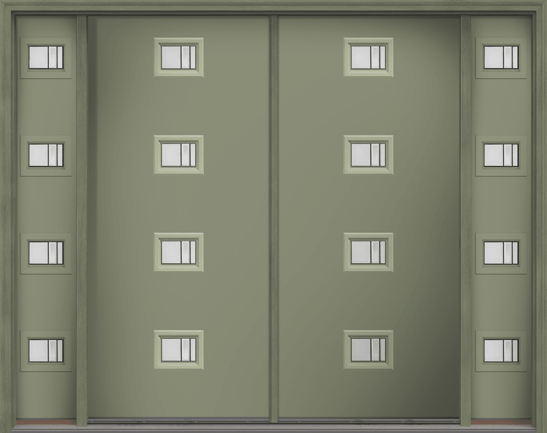 80" Axis Modern Pulse Echo 4-Lite Centered Smooth Fiberglass Double Door, Sidelites