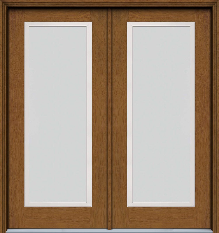 80" Blanca Narrow Full Lite Contemporary Woodgrain Fiberglass Double Door, HVHZ Impact