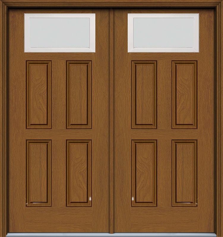 80" Blanca Top View 4 Panel Colonial Woodgrain Fiberglass Double Door, HVHZ Impact
