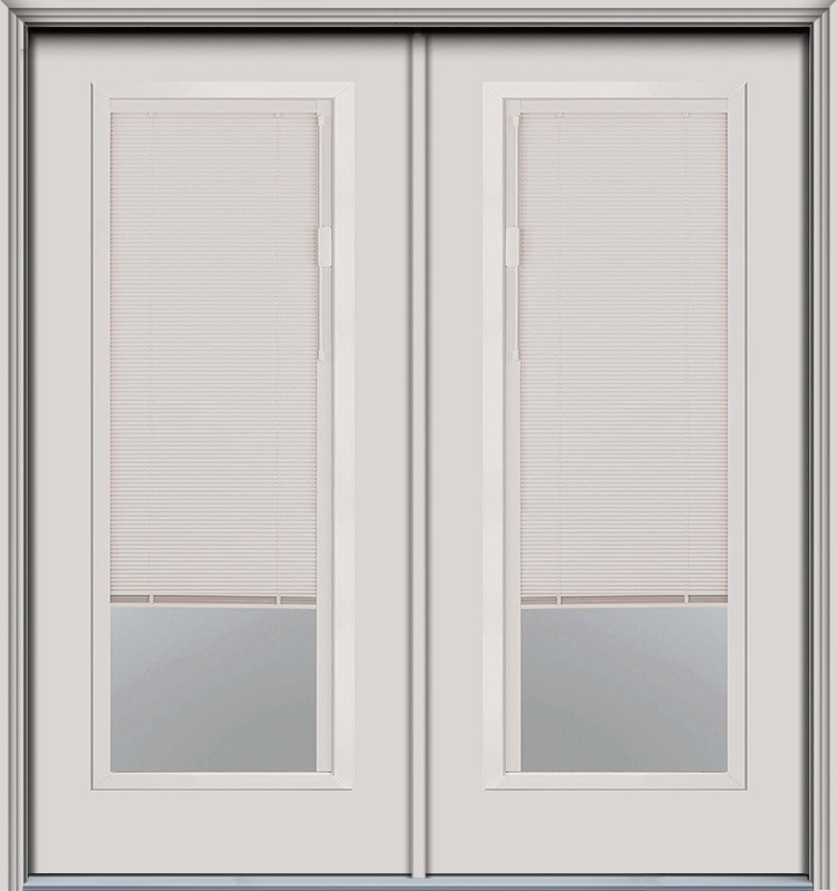80" Blink Blinds Full Lite Contemporary Smooth Fiberglass Double Door, HVHZ Impact