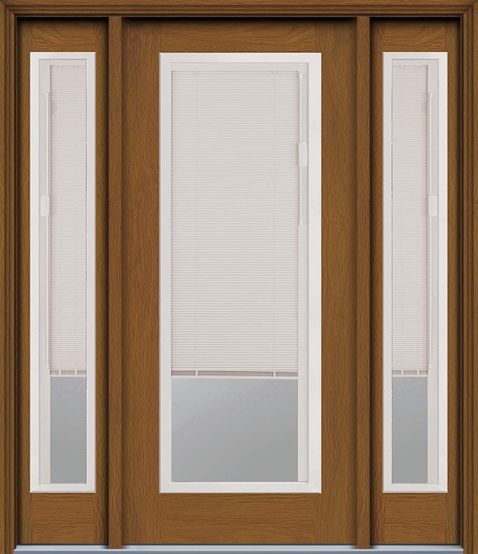 80" Blind Full Lite Contemporary Woodgrain Fiberglass Door, Sidelites, WBD Impact