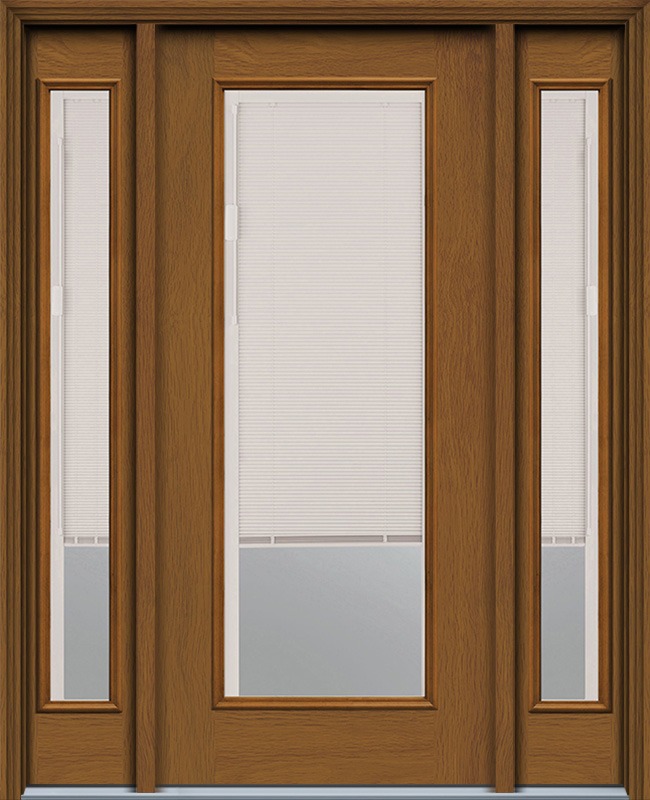 80" Blind Full Lite Woodgrain Fiberglass Door, Sidelites