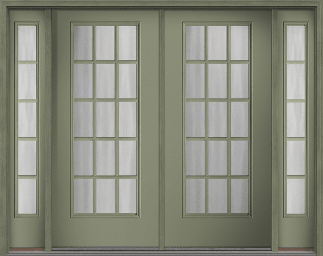 80" Chinchilla Colonial 15 Lite SDL Smooth Full Lite Fiberglass Double Door, Sidelites