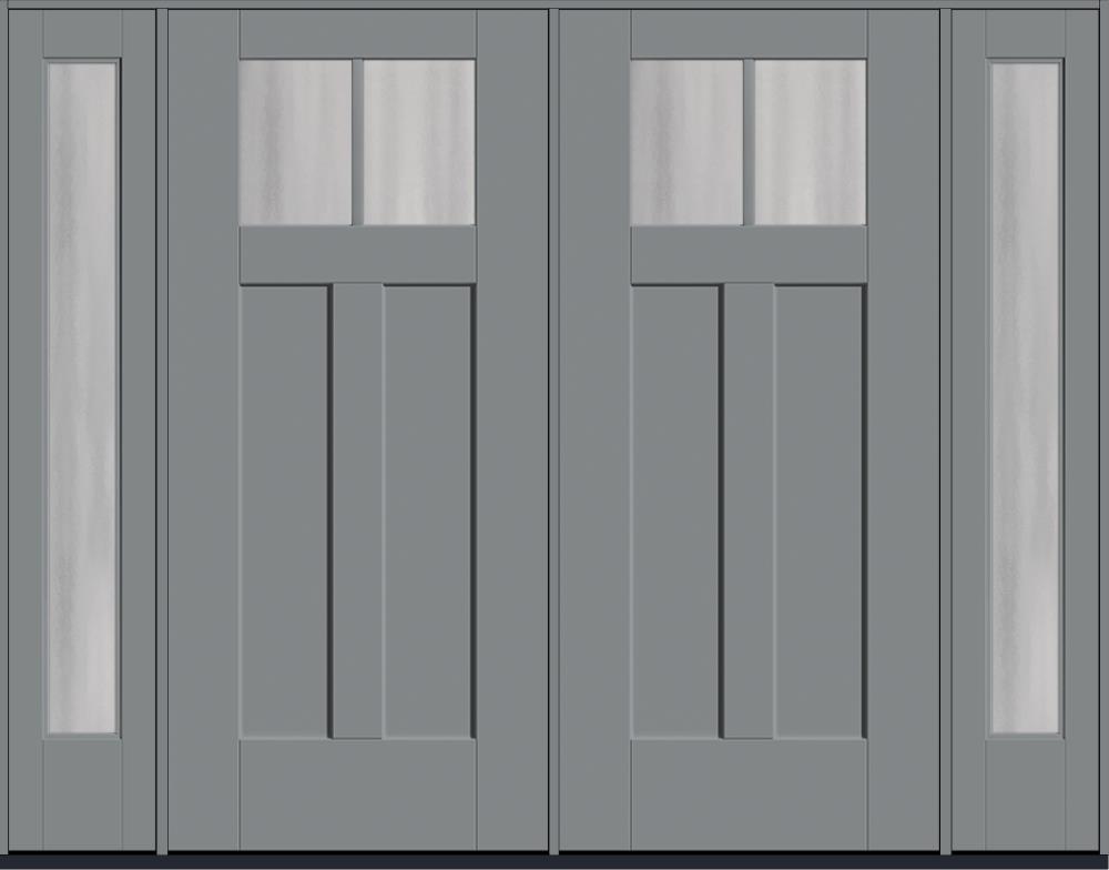 80" Chinchilla Craftsman Top View 2 Lite 2 Panel Shaker SDL Flat 1-1/8" Smooth Flush-Glazed Fiberglass Double Door, Full Sidelites