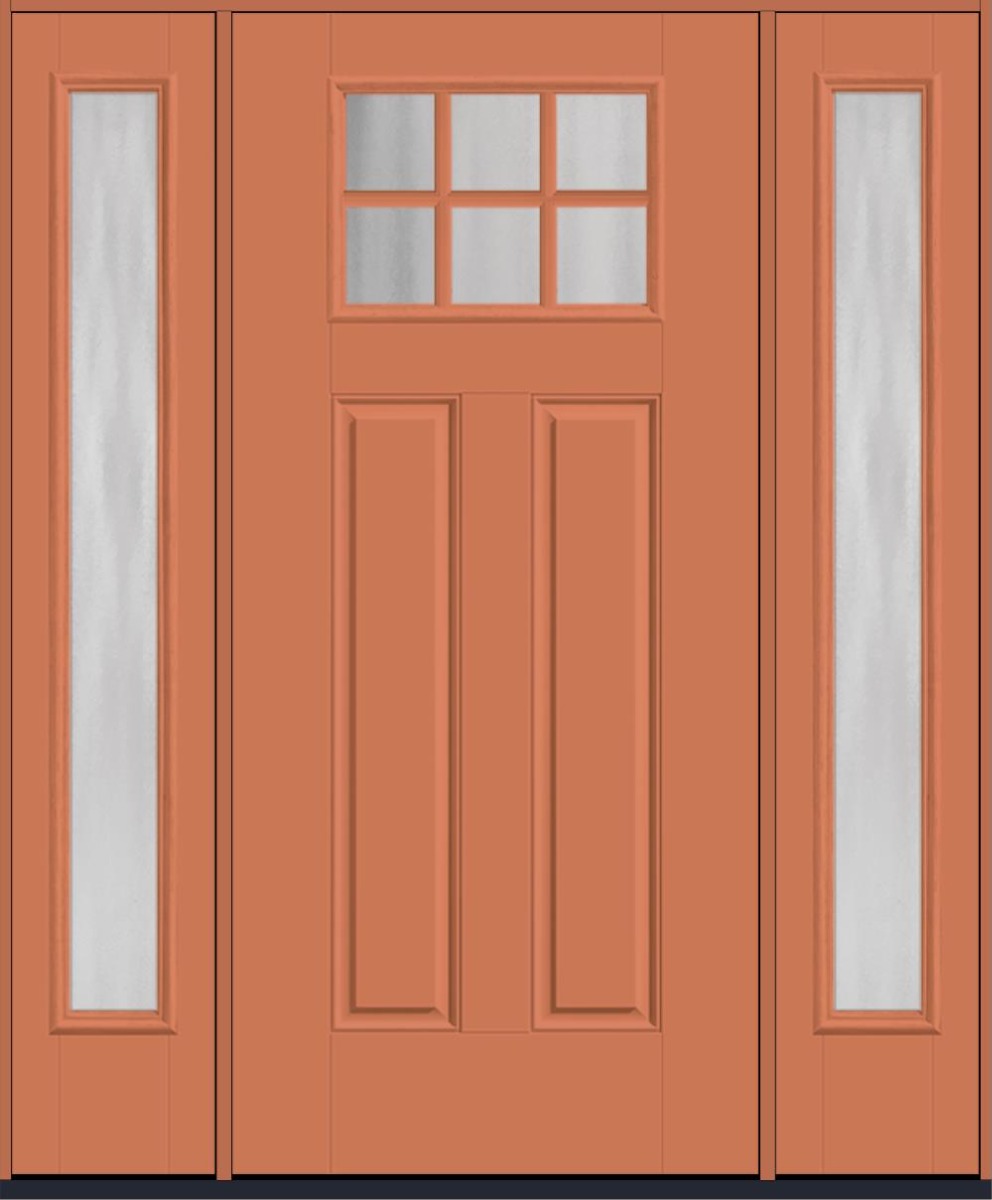 80" Chinchilla Craftsman Top View 6 Lite 2 Panel SDL Smooth Fiberglass Single Door, Full Sidelites