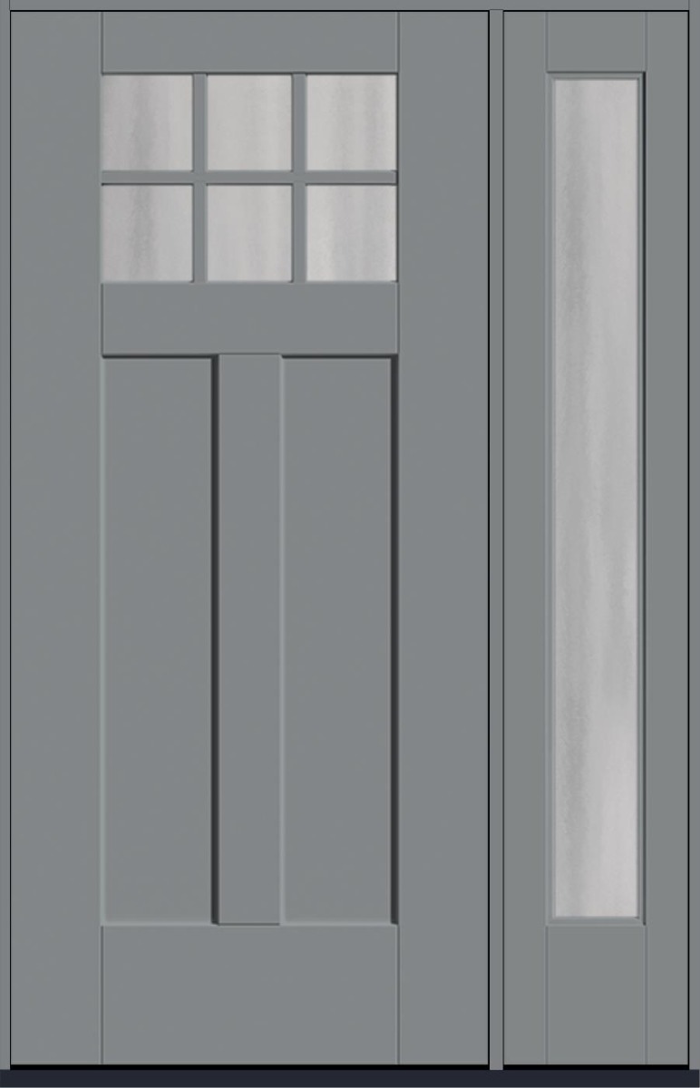80" Chinchilla Craftsman Top View 6 Lite 2 Panel Shaker SDL Flat 1-1/8" Smooth Flush-Glazed Fiberglass Single Door, Full Sidelite