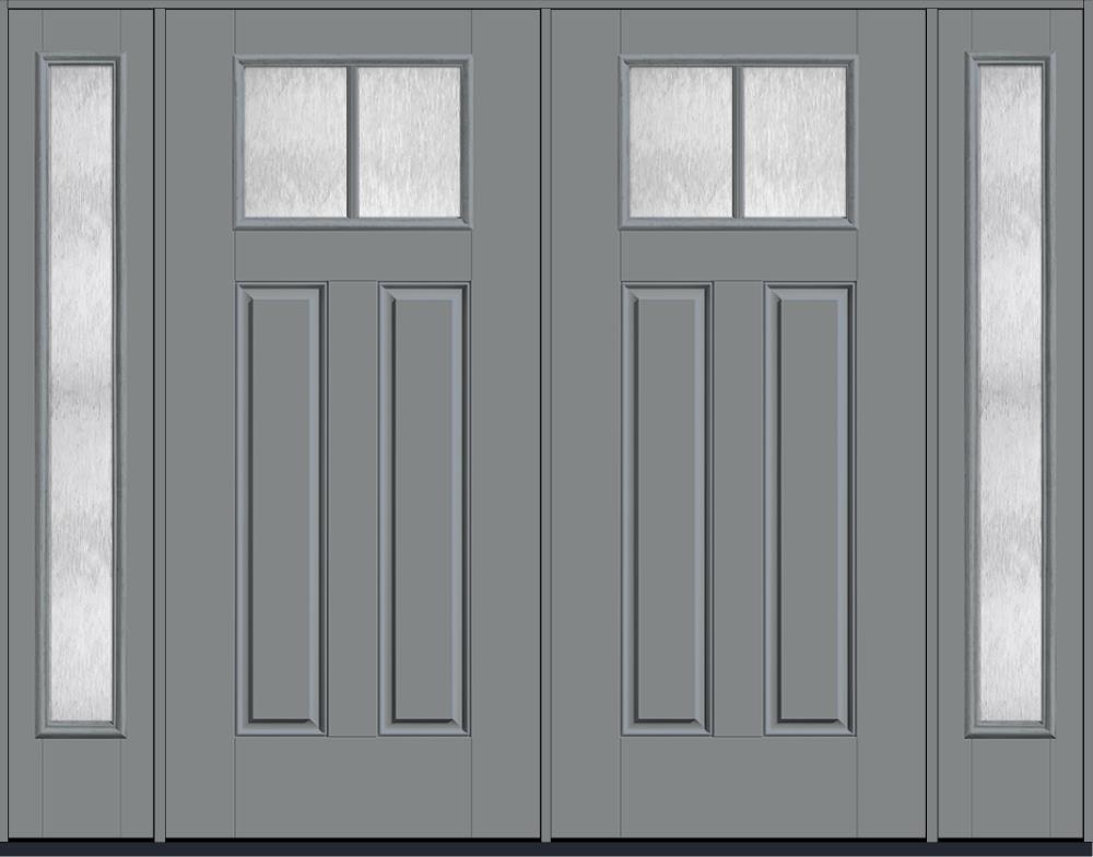 80" Chord Craftsman Top View 2 Lite 2 Panel SDL Smooth Fiberglass Double Door, Full Sidelites