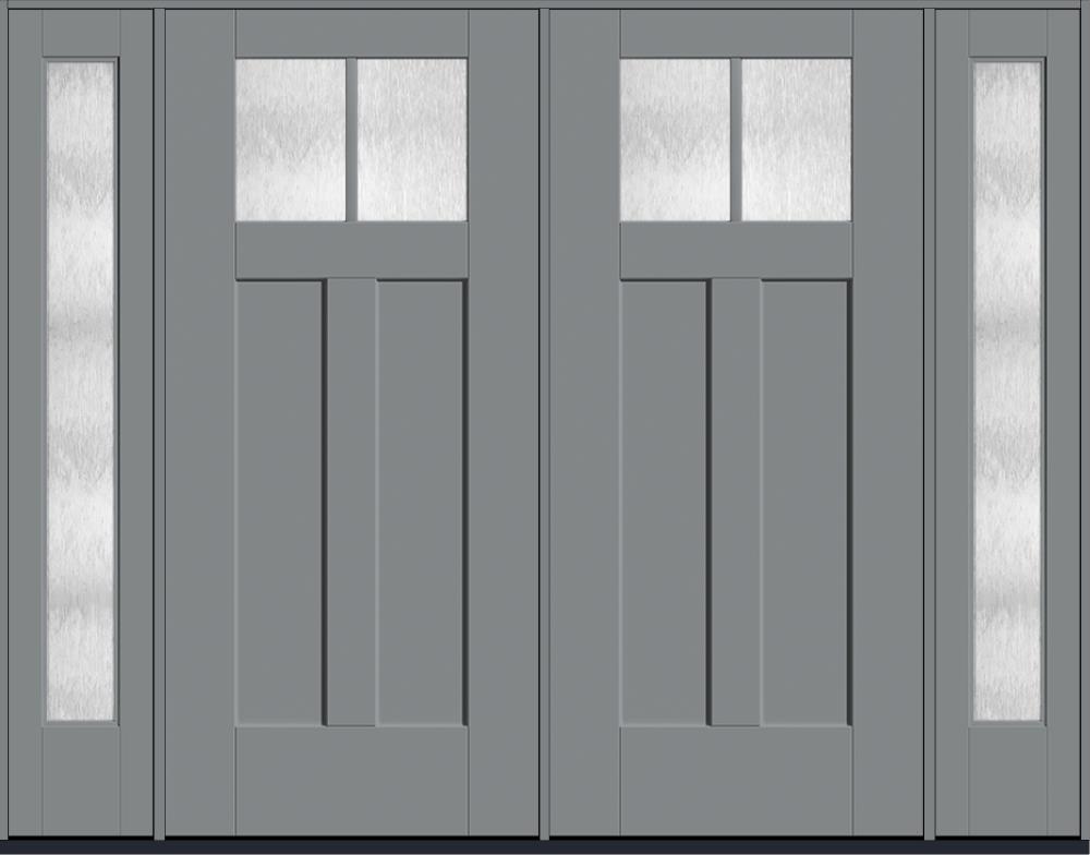 80" Chord Craftsman Top View 2 Lite 2 Panel Shaker SDL Flat 1-1/8" Smooth Flush-Glazed Fiberglass Double Door, Full Sidelites