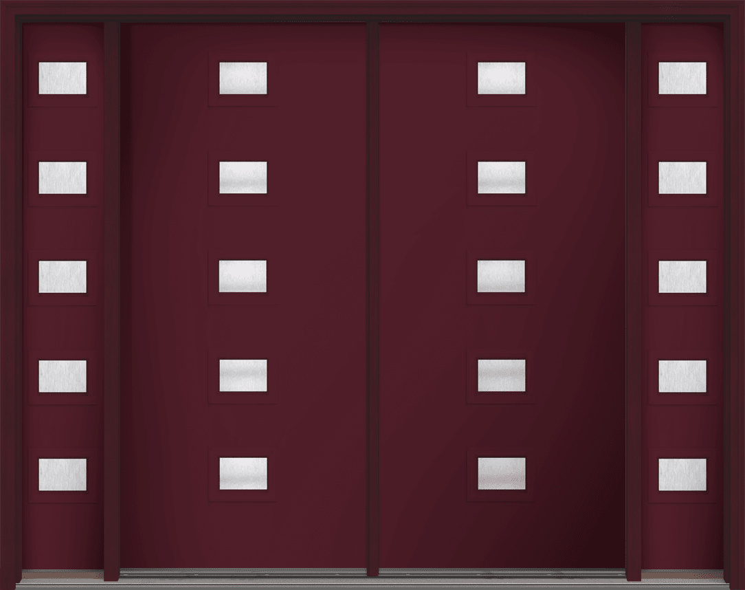 80" Chord Modern Pulse Echo 5-Lite Centered Smooth Fiberglass Double Door, Sidelites