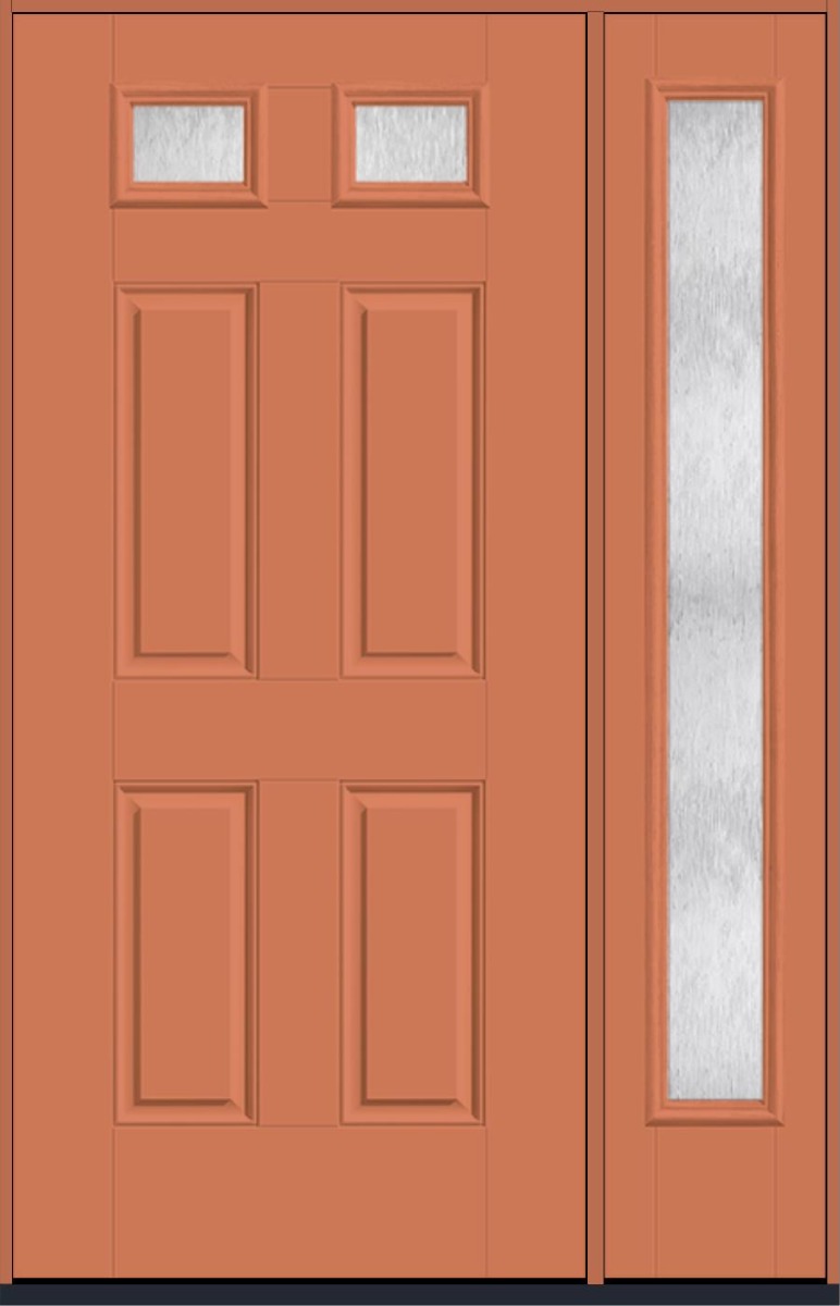 80" Chord Top View 2 Lite 4 Panel Smooth Fiberglass Single Door, Full Sidelite