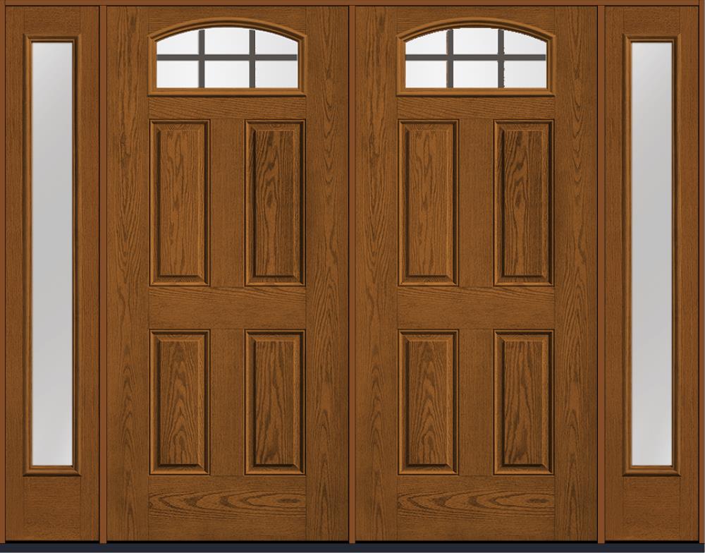 80" Clear Camber Top 6 Lite 4 Panel GBG Flat Bronze Oak Fiberglass Double Door, Full Sidelites