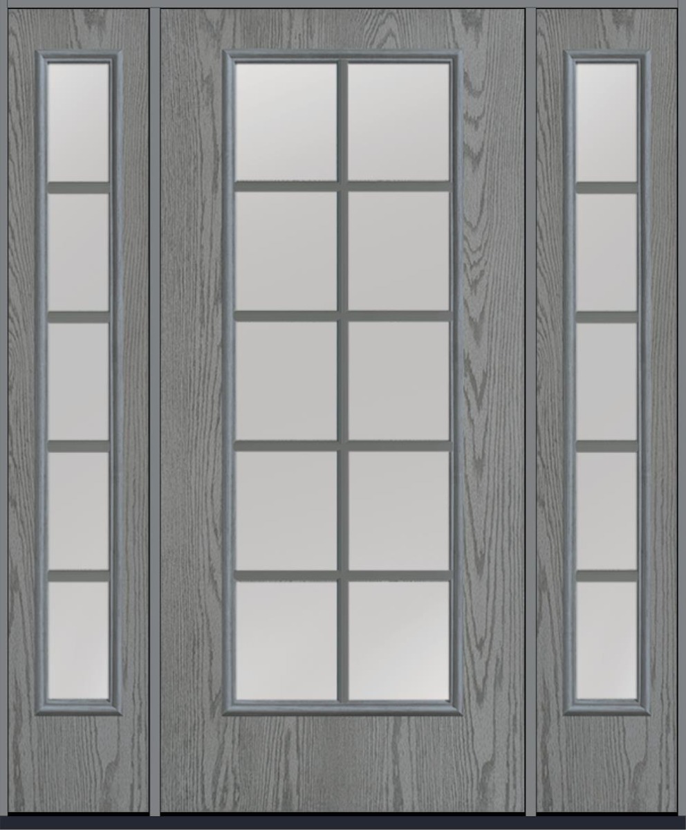 80" Clear Colonial 10 Lite SDL Oak Full Lite Fiberglass Single Door, Sidelites