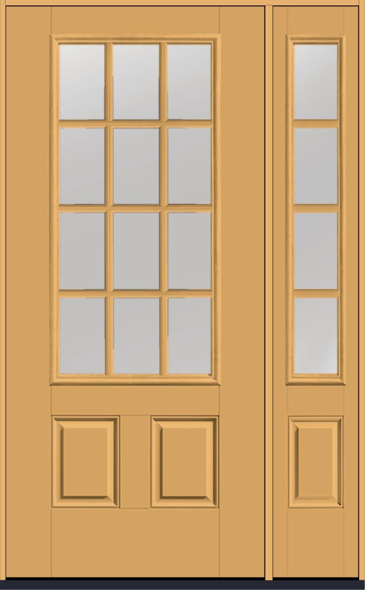 80" Clear Colonial 12 Lite SDL Smooth 3/4 Lite 2 Panel Fiberglass Single Door, Sidelite
