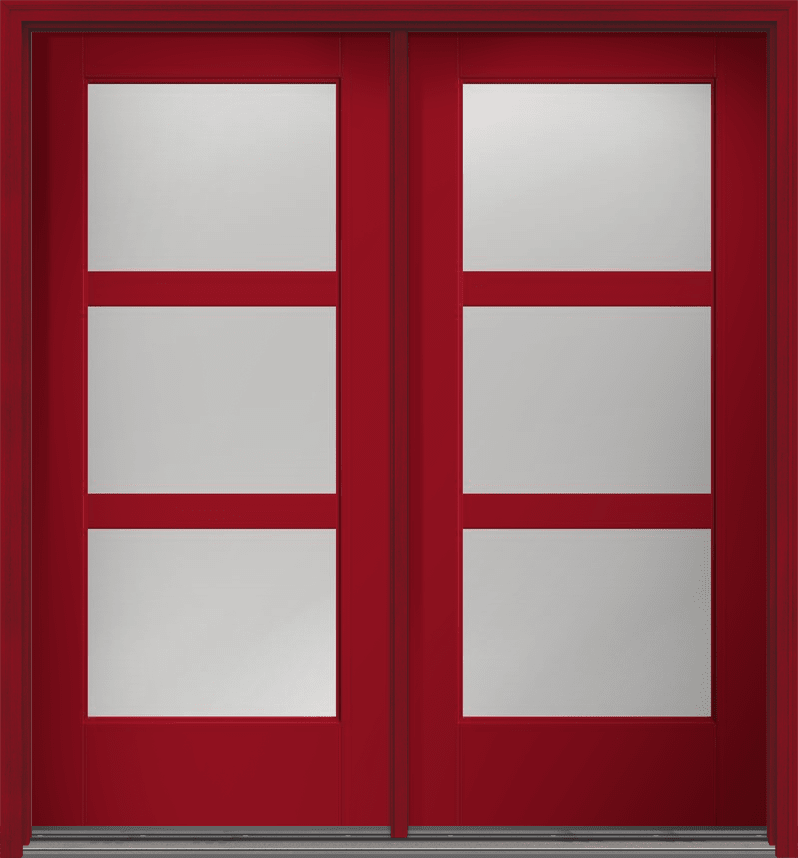 80" Clear Contemporary 3 Lite SDL Flat 3-1/2" Smooth Full Lite Flush-Glazed Fiberglass Double Door