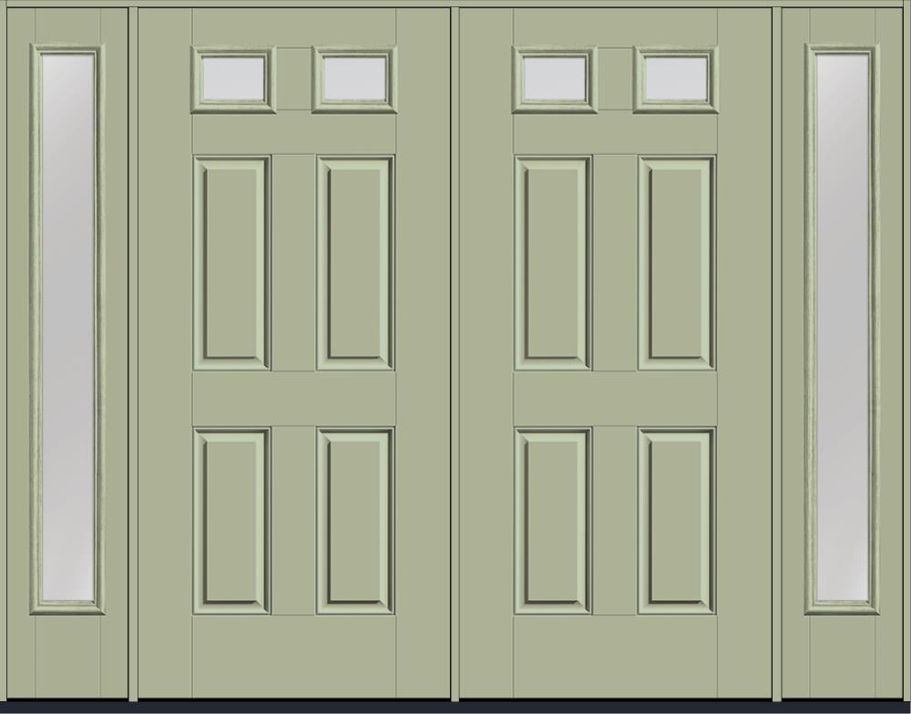 80" Clear Top View 2 Lite 4 Panel Smooth Fiberglass Double Door, Full Sidelites