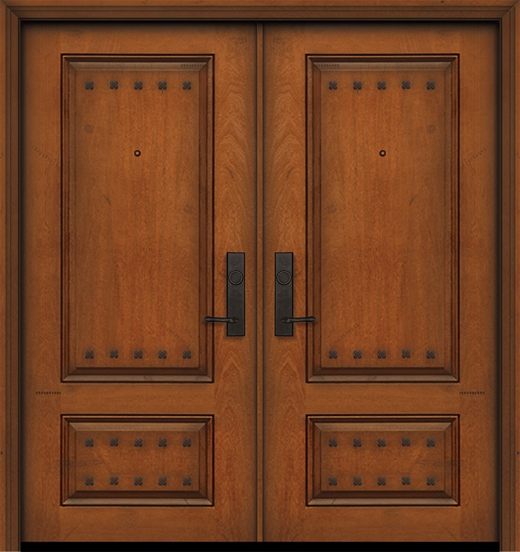 80" Double 2 Panel Square Mahogany Door with Clavos