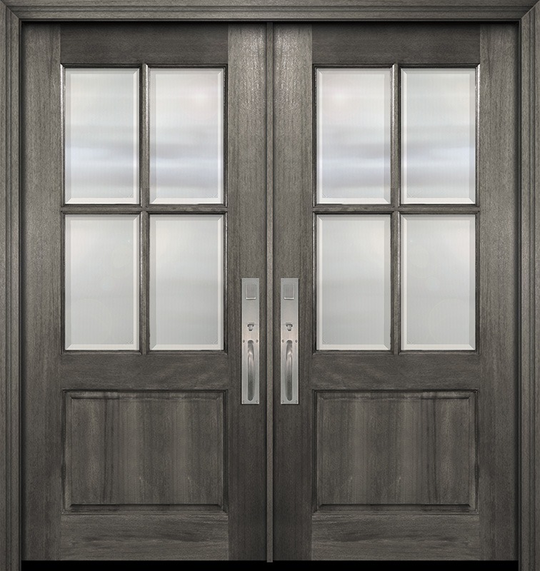 80" Double 4 Lite TDL Large Panel DoorCraft Mahogany Door w/Bevel IG