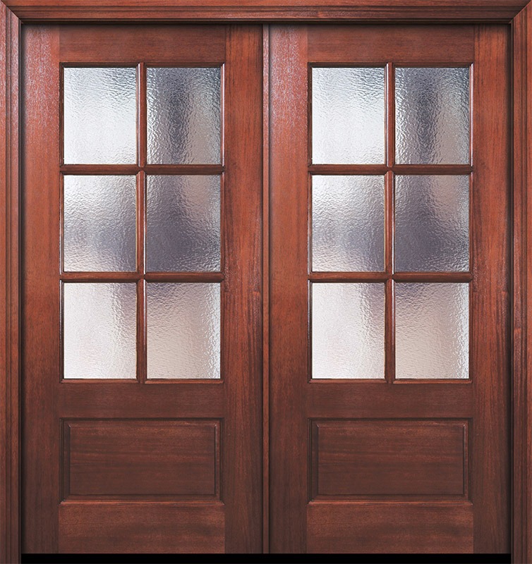 80" Double 6 Lite TDL DoorCraft Mahogany Door w/Textured Glass