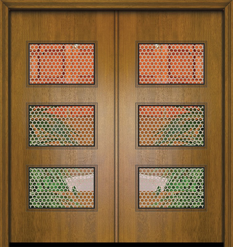 80" Double Santa Monica Mahogany Contemporary Door w/Metal Grid