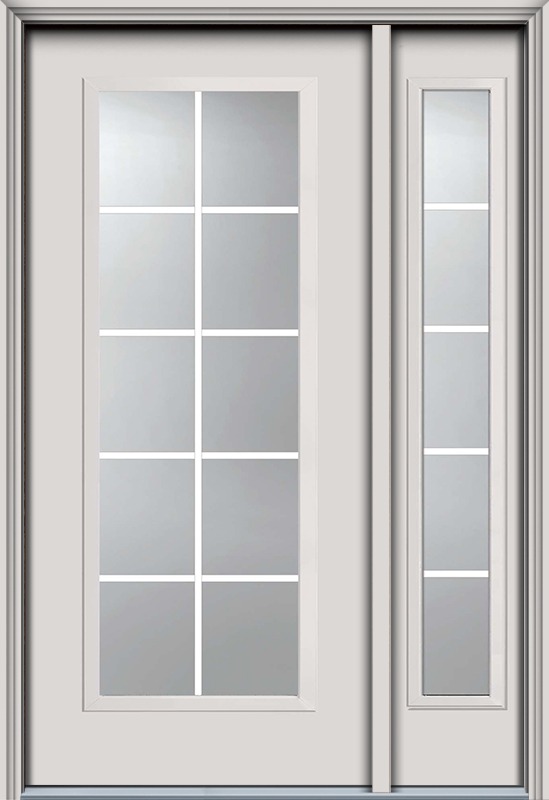 80" Full Lite, 10 Lite GBG Colonial Smooth Fiberglass Door, Sidelite, HVHZ Impact