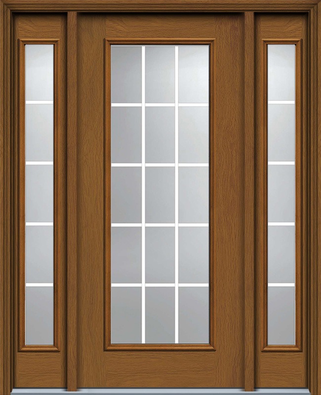 80" Full Lite, 15 Lite GBG Woodgrain Door, Sidelites