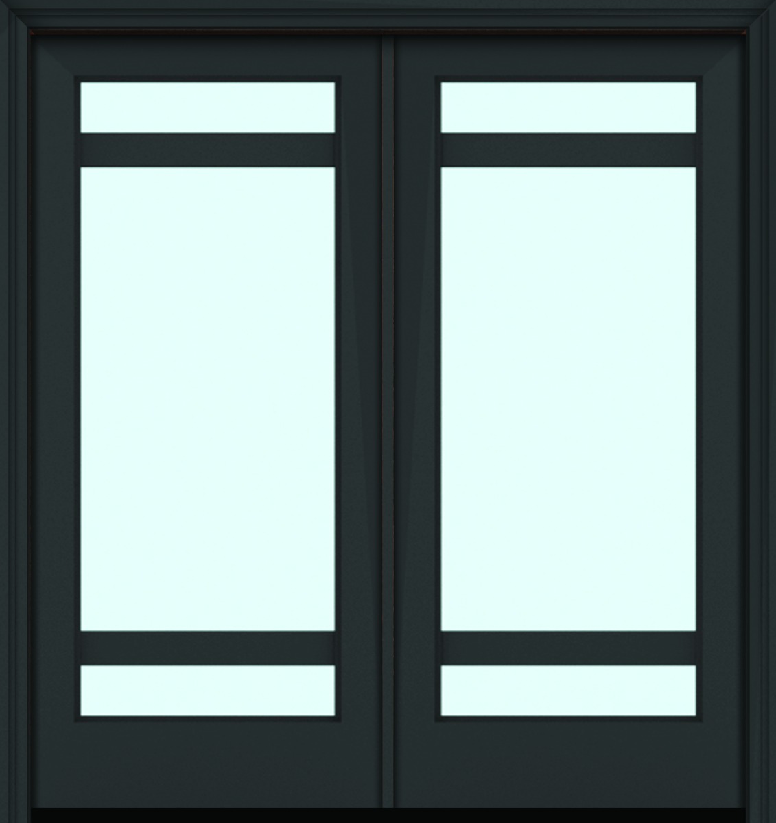 80" Full Lite 3 Lite Horizontal 3.5" SDL Nova 90 Modern Smooth Fiberglass Double Door
