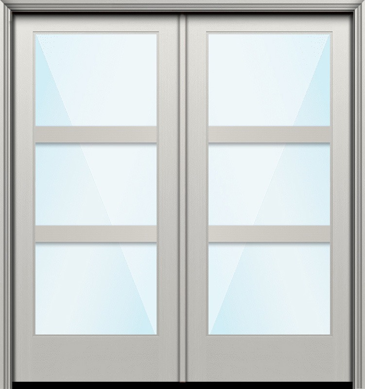 80" Full Lite 3 Lite Horizontal 3.5" SDL Nova 90 Modern Smooth Fiberglass Double Door