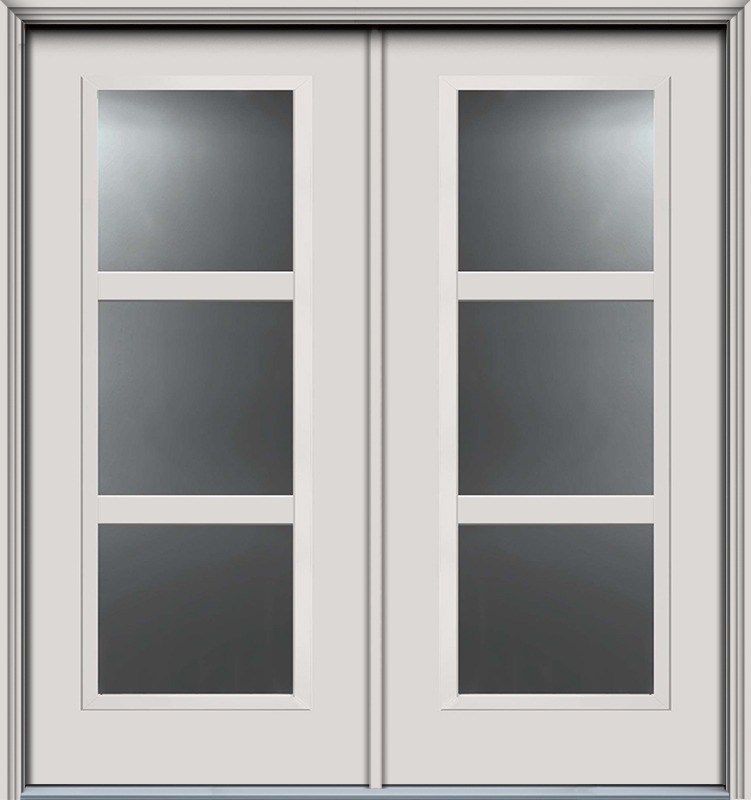 80" Full Lite, Horizontal 3 Lite SDL Contemporary Smooth Fiberglass Double Door, WBD Impact